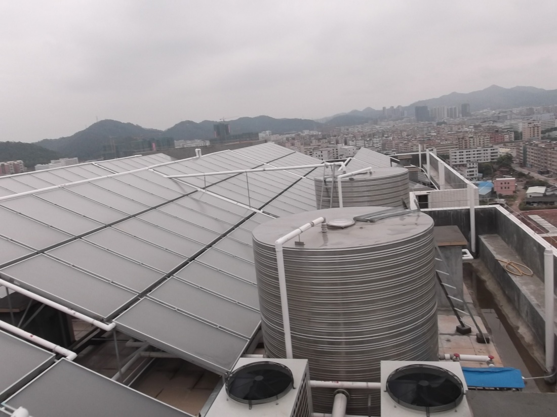 TCL王牌電器(惠州)有限公司員工公寓安裝560㎡平板太陽能與12臺空氣源熱泵互補(bǔ)的集中供熱水系統(tǒng)。為該公寓每天為員工供應(yīng)90噸熱水,滿足1600人的熱水洗浴需求。